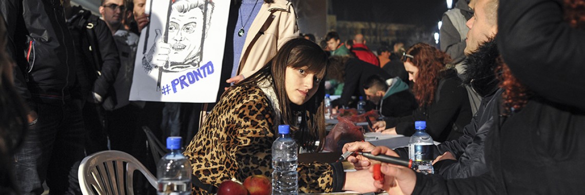 Activists at the opposition encampment in Prishtina’s main square prepare for the mass protest against the presidential election on Friday.