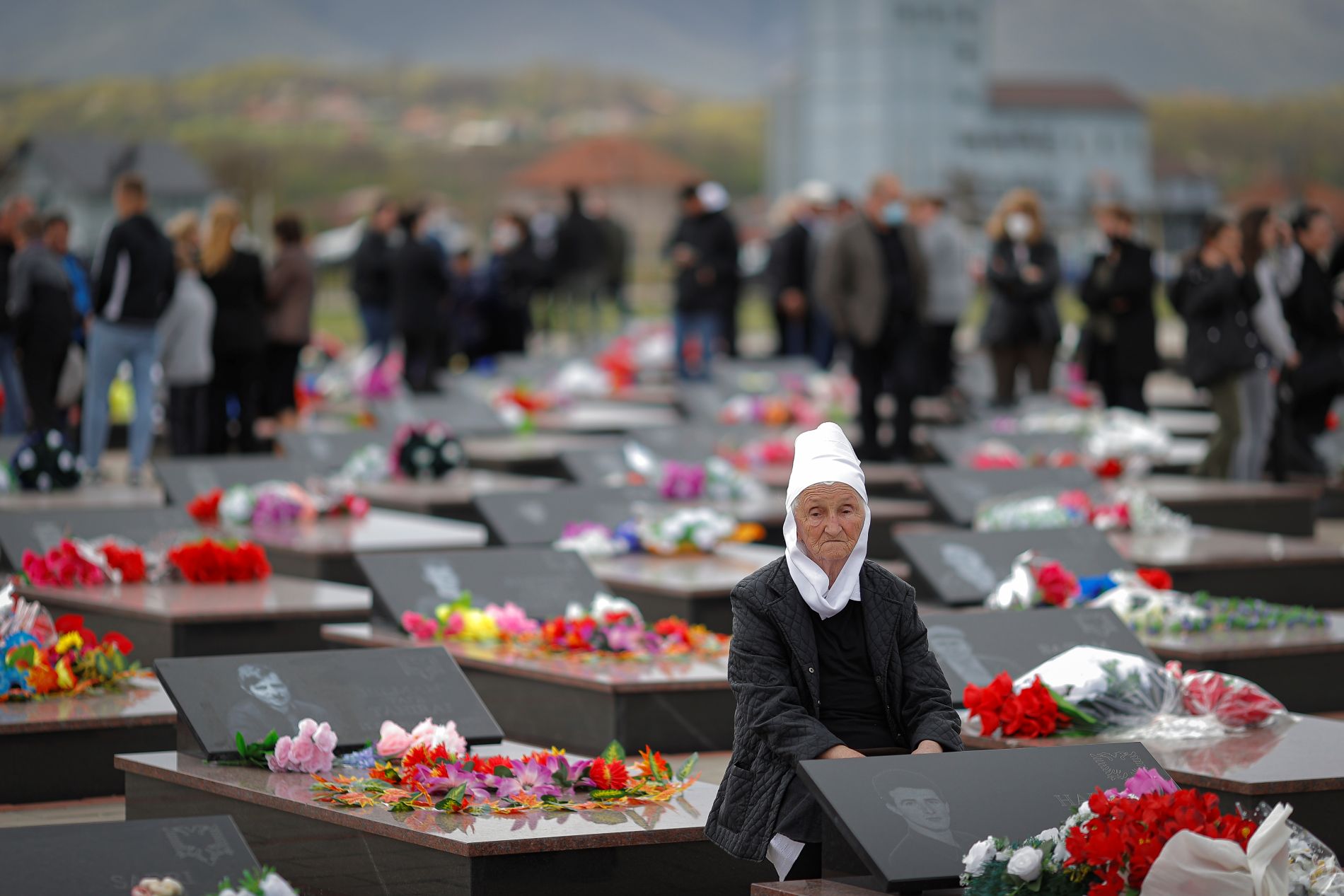 Vase Tahiraj, 89, mourns her son during the ‘Day of Missing Persons’ ceremony at the cemetery in Meje, Kosovo, on April 27, 2021. Photo:EPA/Valdrin Xhemaj