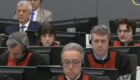 Hashim Thaci and his defence team in court, February 10, 2026. Photo: Kosovo Specialist Chambers/Livestream.