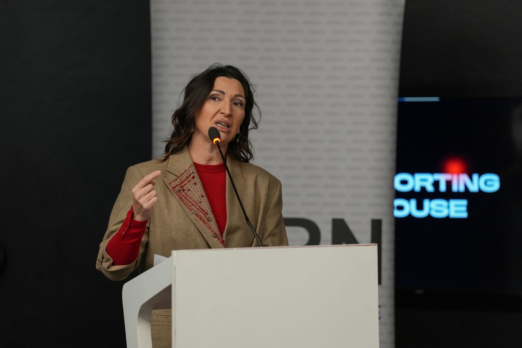 BIRN Kosovo director Jeta Xharra at launch of the project “Media Integrity and Disinformation Tracking” (MIDwatch) on October 8, 2025. Photo: BIRN