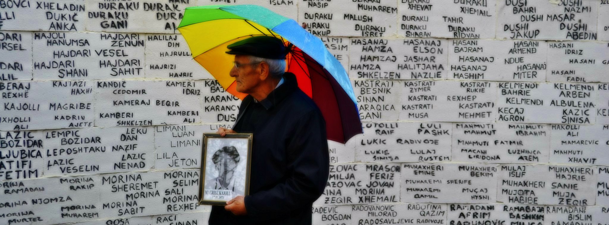 Uncle Syla from Peja, holding a picture of his daughter Magribe, came and stood near the wall inscribed with the names of the disappeared that we put up. In 2011 YIHR KS erected a white 20-meter-long wall in the city centre, at the ‘Zahir Pajaziti’ square, to mark the national day of missing persons. The wall had names of all the missing people in Kosovo–at the time there were 1819 of them–and it was the first time in our society that citizens saw names of persons from all communities in one place. Hence, this was the first “memorial” to remember all missing people in an inclusive way.
