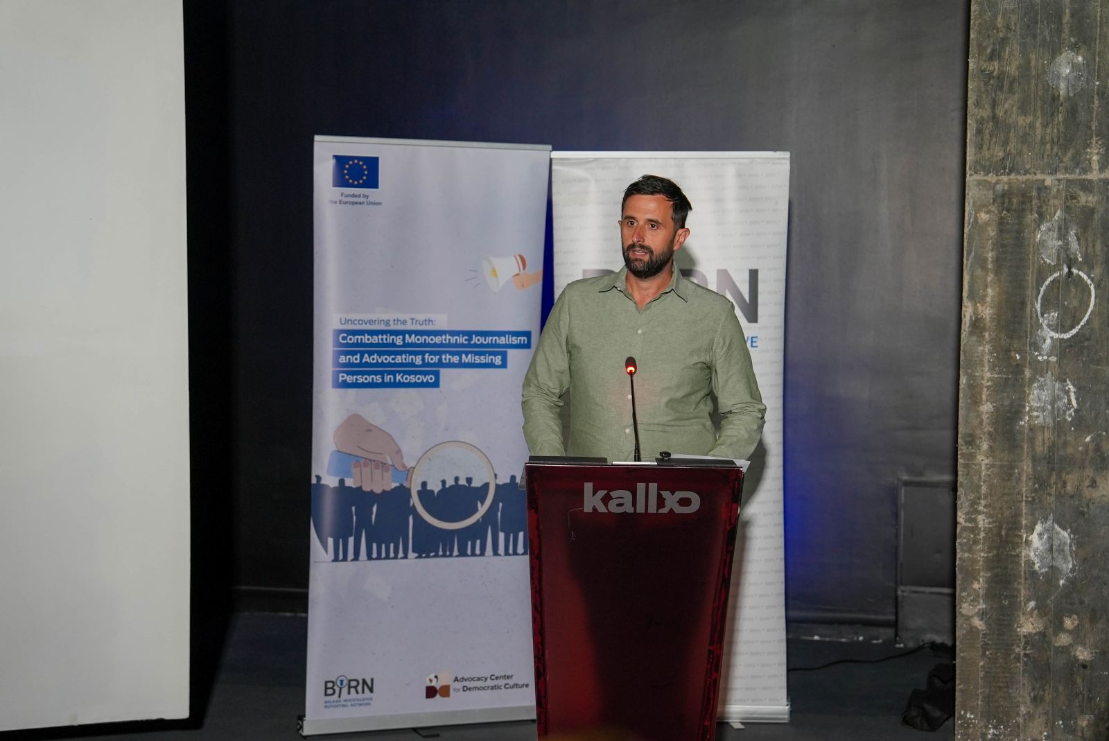 Kreshnik Gashi, editor-in-chief of Kallxo.com at the launch of the project to document stories and trauma of families of missing persons from the Kosovo war, on August 29, 2025. Photo: BIRN
