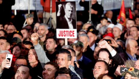 On the 18th anniversary of the independence of Kosovo, thousands of citizens marched in Prishtina in support of the former leaders of the Kosovo Liberation Army, who are currently on trial in The Hague for alleged war crimes.