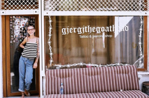 ALBANA by Eve-anne Travers 24/08/2019 Albana in front of her tattoo studio. Image: Gjergj the Goat Head. Please enable JavaScript to view the comments powered by Disqus.