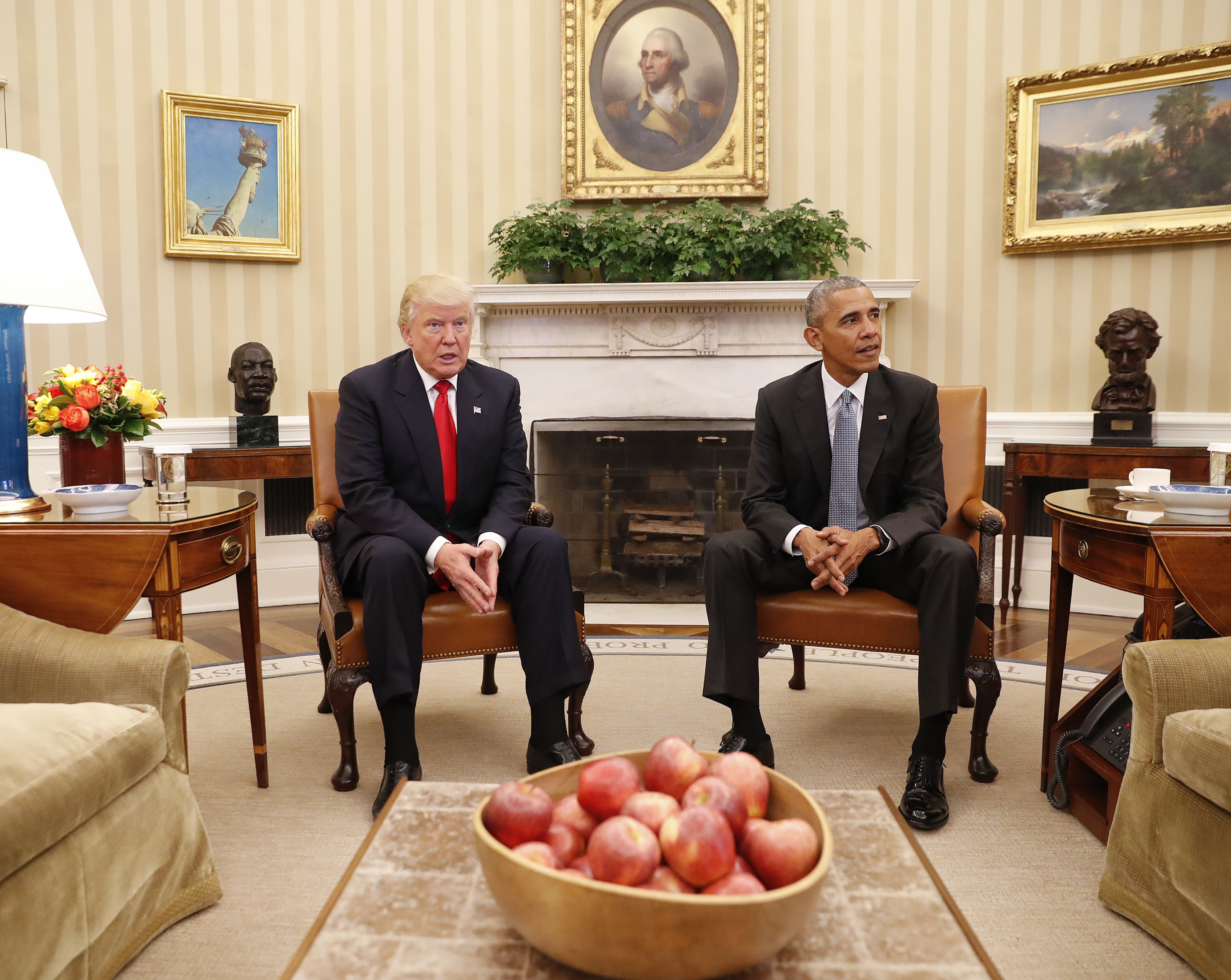 President Barack Obama meets with President-elect Donald Trump in the Oval Office of the White House in Washington, Thursday, Nov. 10, 2016. (AP Photo/Pablo Martinez Monsivais)