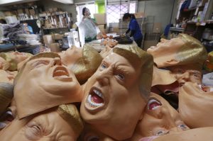 Rubber masks depicting President-elect Donald Trump are prepared for final touch at the Ogawa Studio in Saitama, north of Tokyo, Tuesday, Nov. 15, 2016. Ogawa Studio, the only manufacturer of rubber masks in Japan, is working non-stop to catch up with a flood of orders for Trump masks since his election victory one week ago. The masks cost 2,400 yen or US$ 22.4 dollars each and are on sale at local toy shops, retail stores as well as through the internet shopping sites. (AP Photo/Eugene Hoshiko)