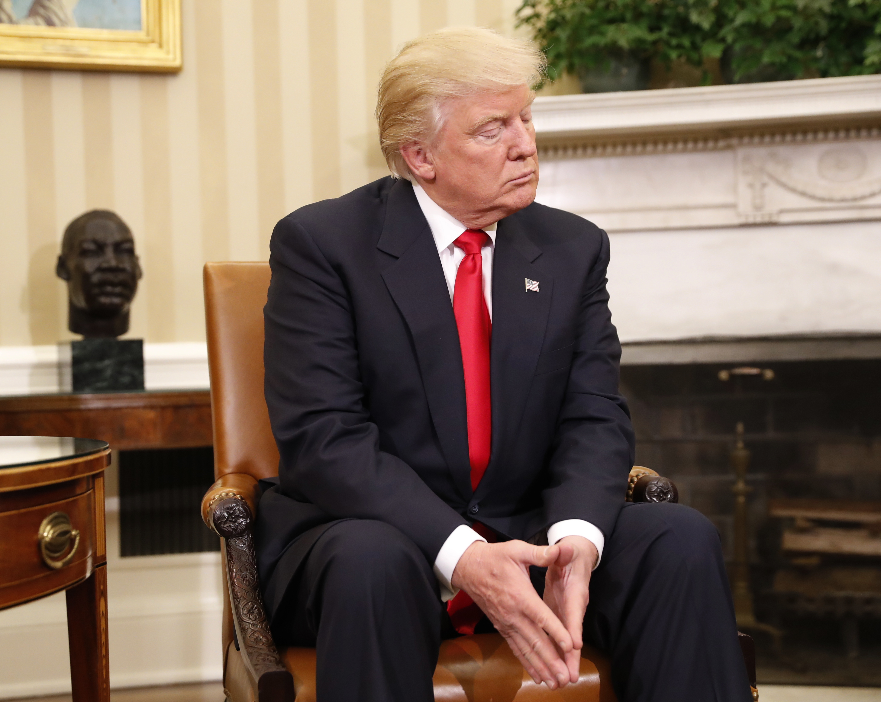 President-elect Donald Trump listens during his meeting with President Barack Obama in the Oval Office of the White House in Washington, Thursday, Nov. 10, 2016. (AP Photo/Pablo Martinez Monsivais)